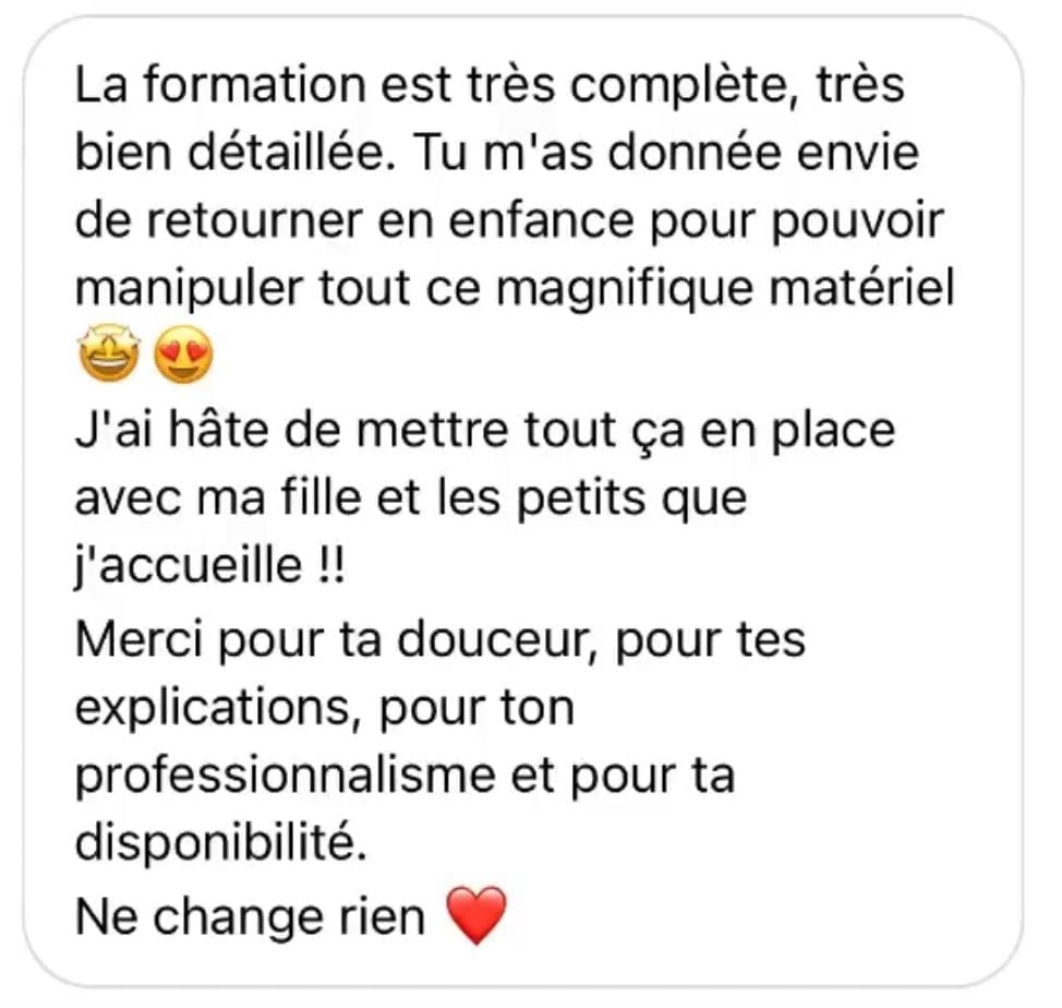 Ce sont des milliers d’élèves qui, à travers ma formation en ligne, ont pu se former à la pédagogie Montessori, de manière concrète, avec un contenu de qualité et toujours à petit prix !
